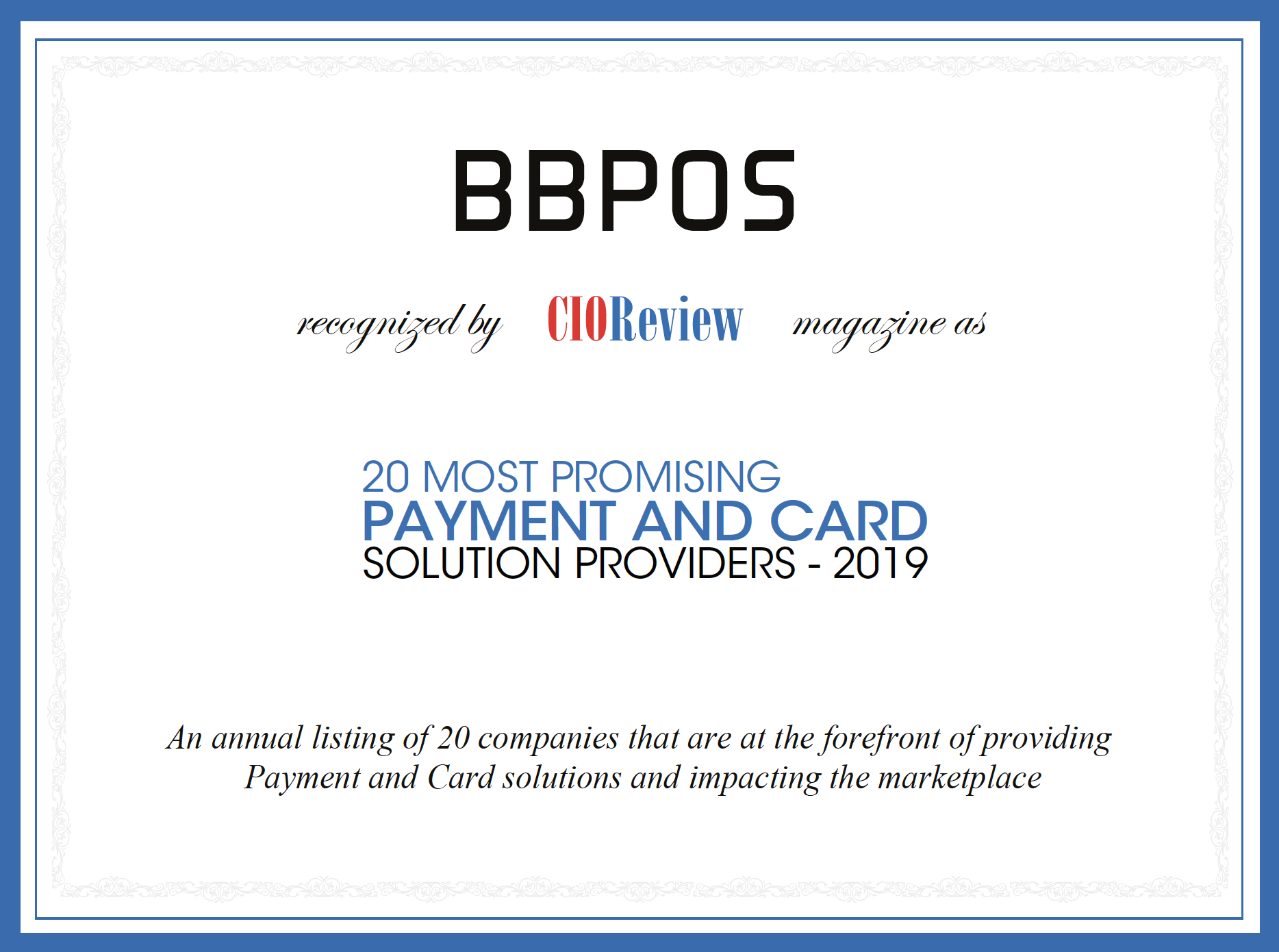 BBPOS is honored by CIO Review as one of the most Promising Card and Solution Providers 2019For the complete article,click here.